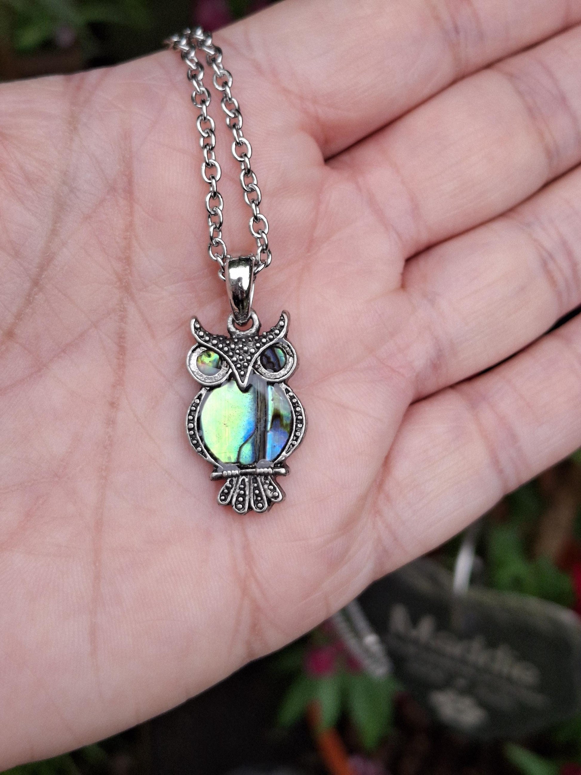 Abalone Owl Bird Necklace - Choose Your Chain Style