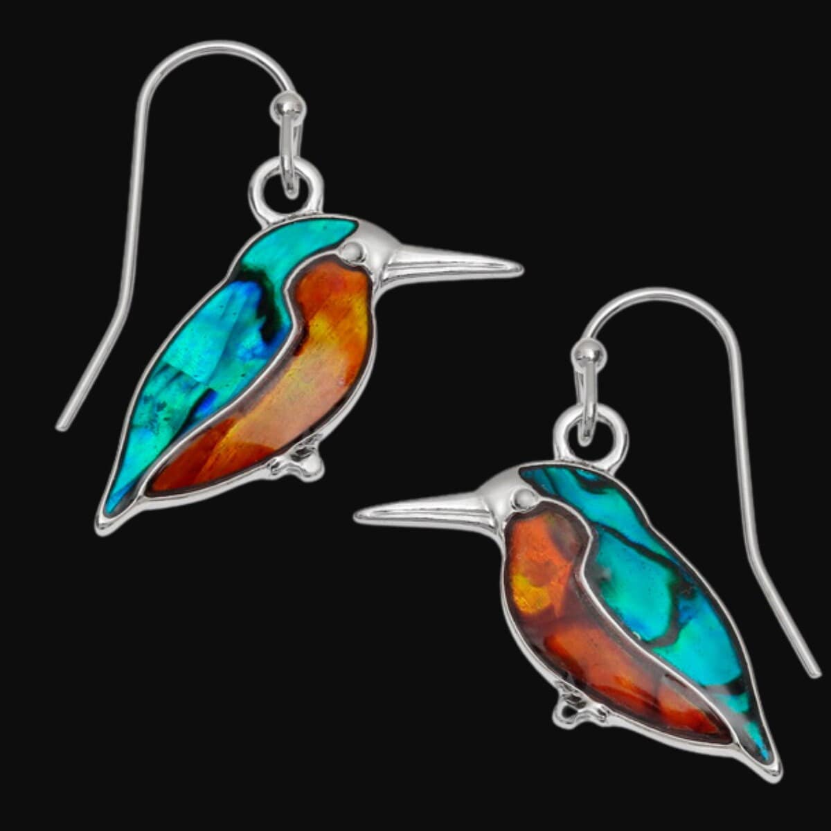 🐦 KINGFISHER BIRD EARRINGS WITH ABALONE SHELL