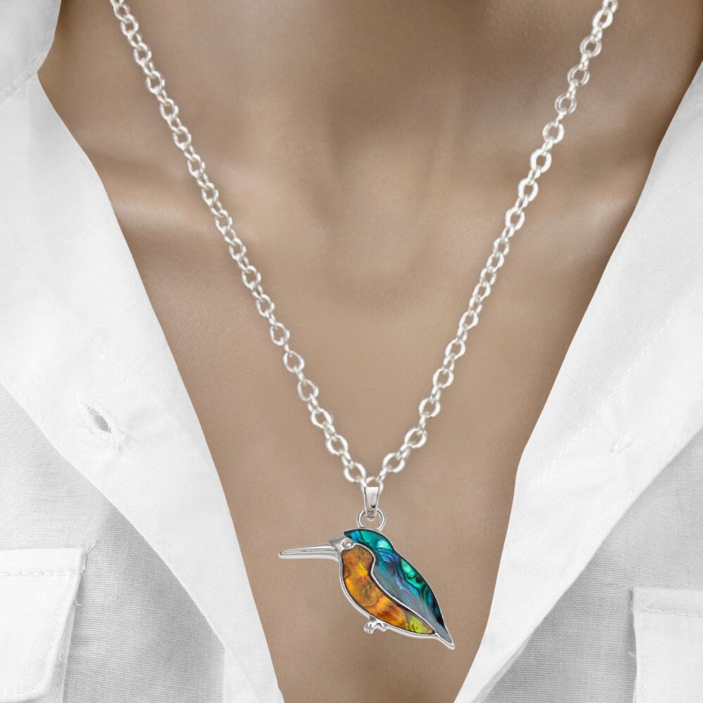 Abalone Kingfisher Bird Necklace - Choose Your Chain Style