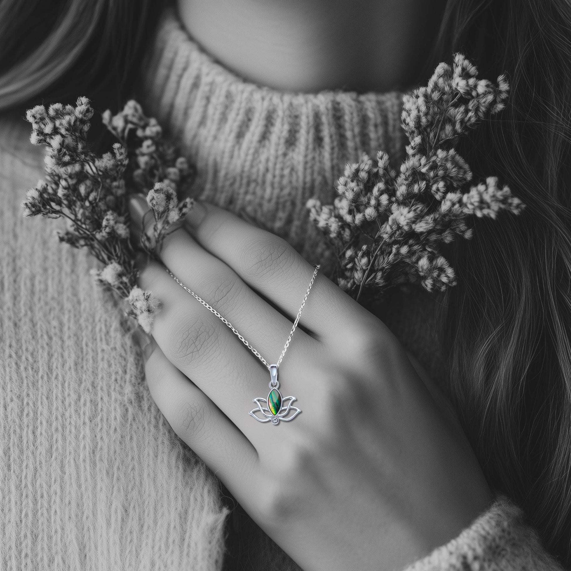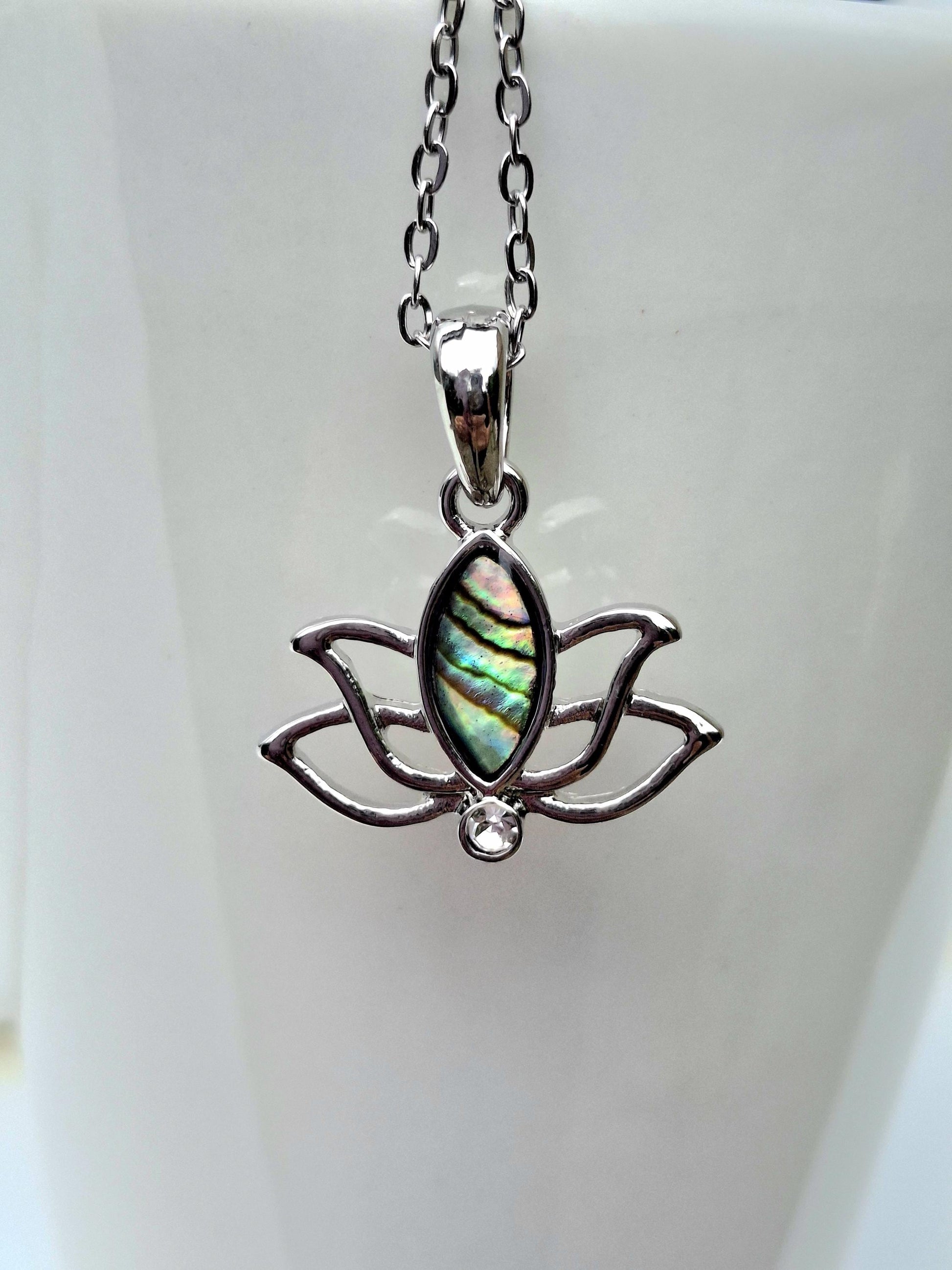 Abalone Shell Lotus Flower Necklace - Choose Your Chain Style