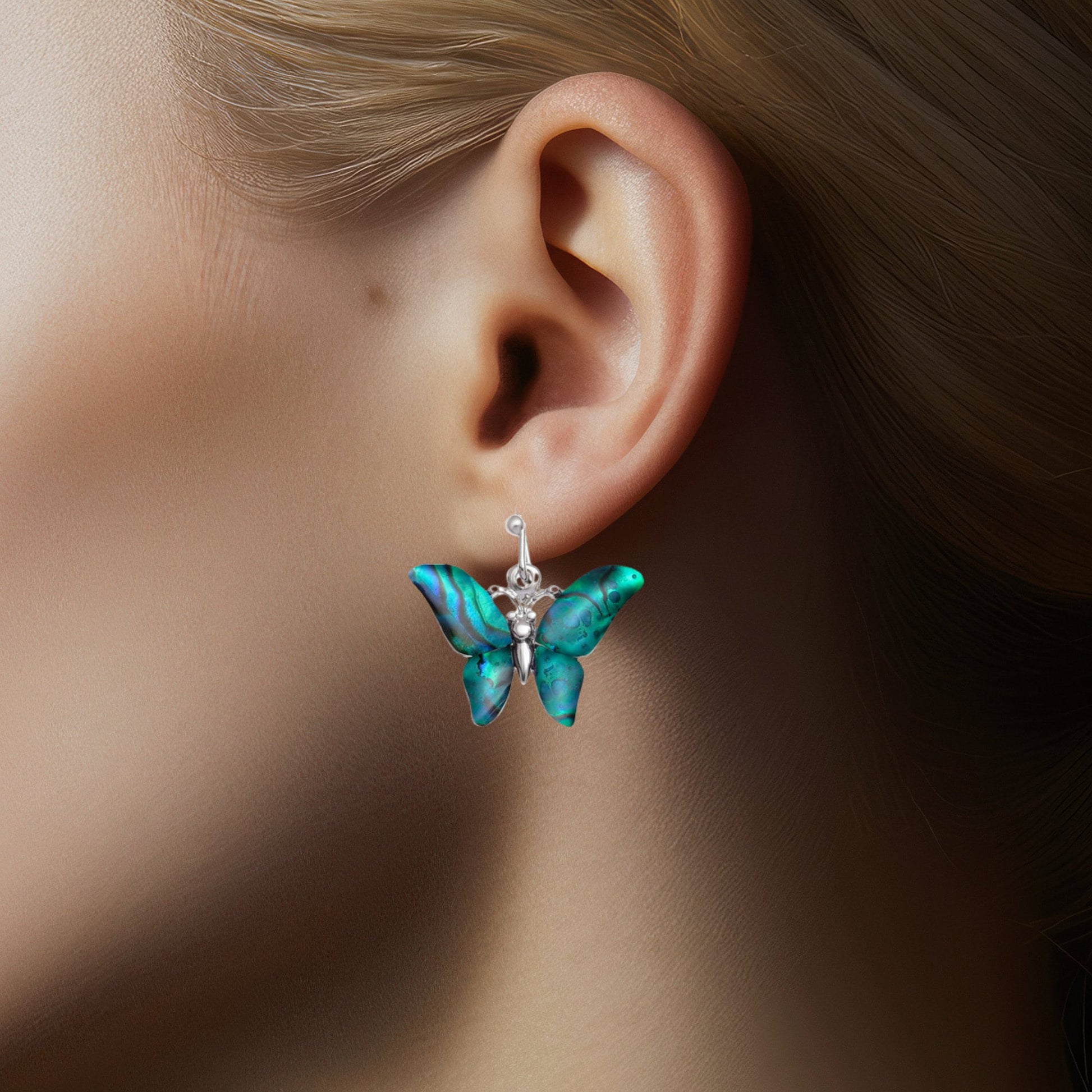 Embrace transformation, beauty, and freedom with these stunning blue butterfly earrings, featuring shimmering abalone shell. A timeless symbol of change and renewal, butterflies remind us to embrace growth and live life with grace.