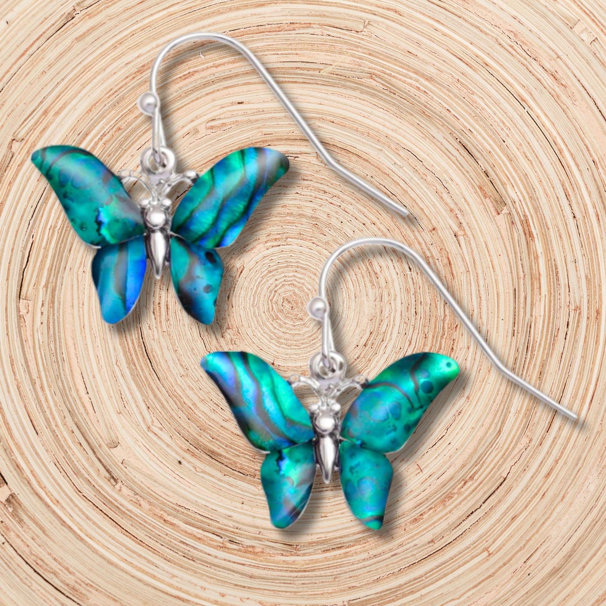 Blue Abalone Shell Butterfly Earrings - Choose Your Ear Wire