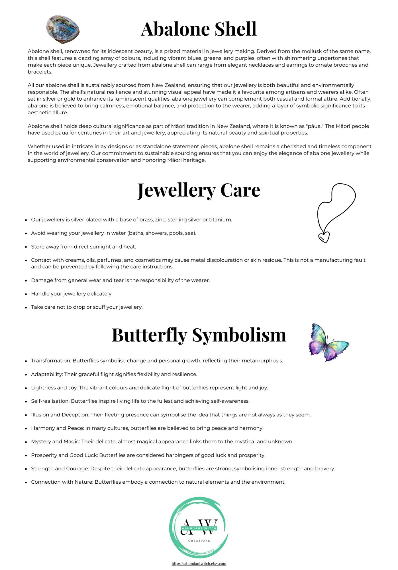 Abalone shell, also known as Paua shell or Sea Opal, is celebrated for its iridescent beauty and cultural significance. Sustainably sourced from New Zealand, each shell is unique, symbolising peace, harmony, and good fortune.