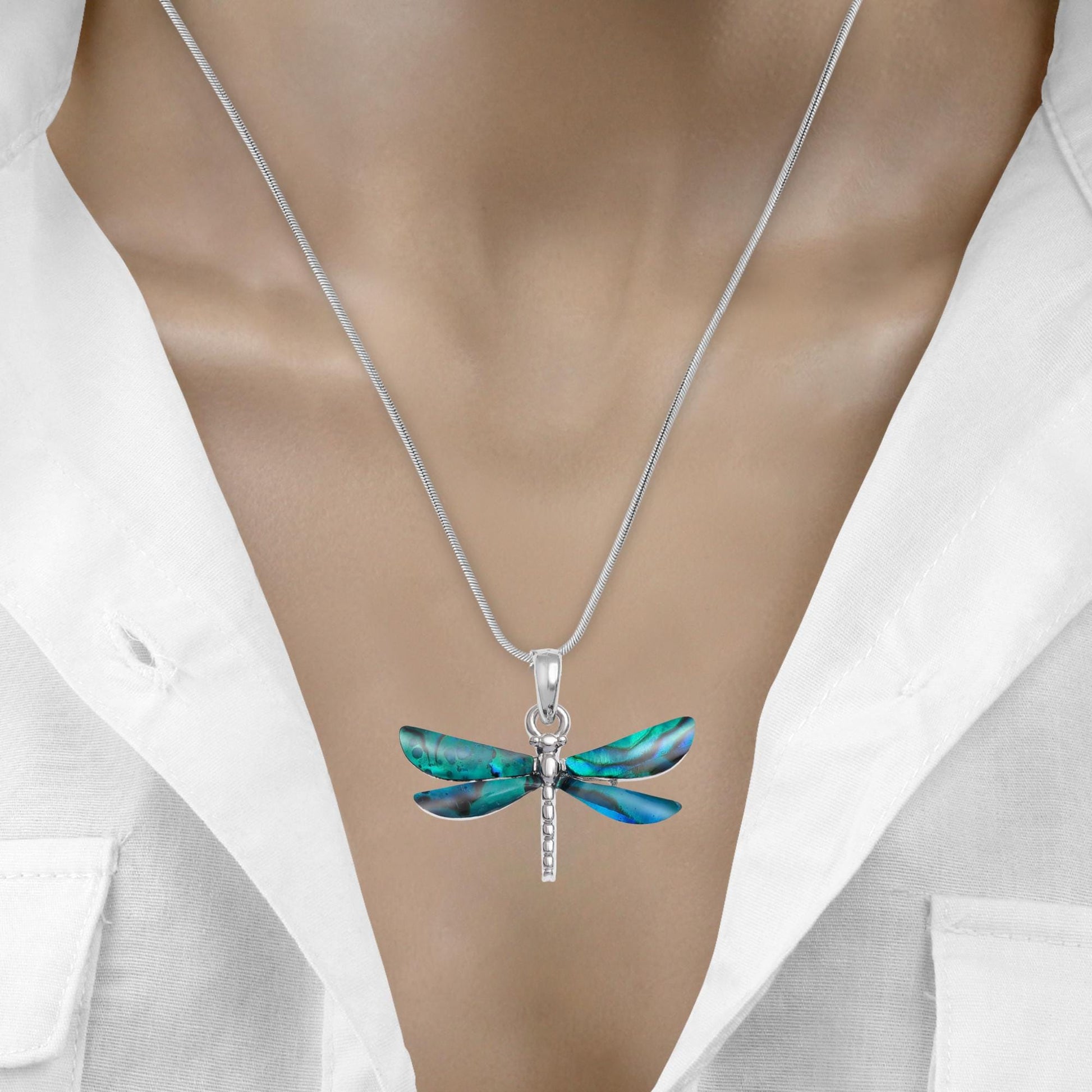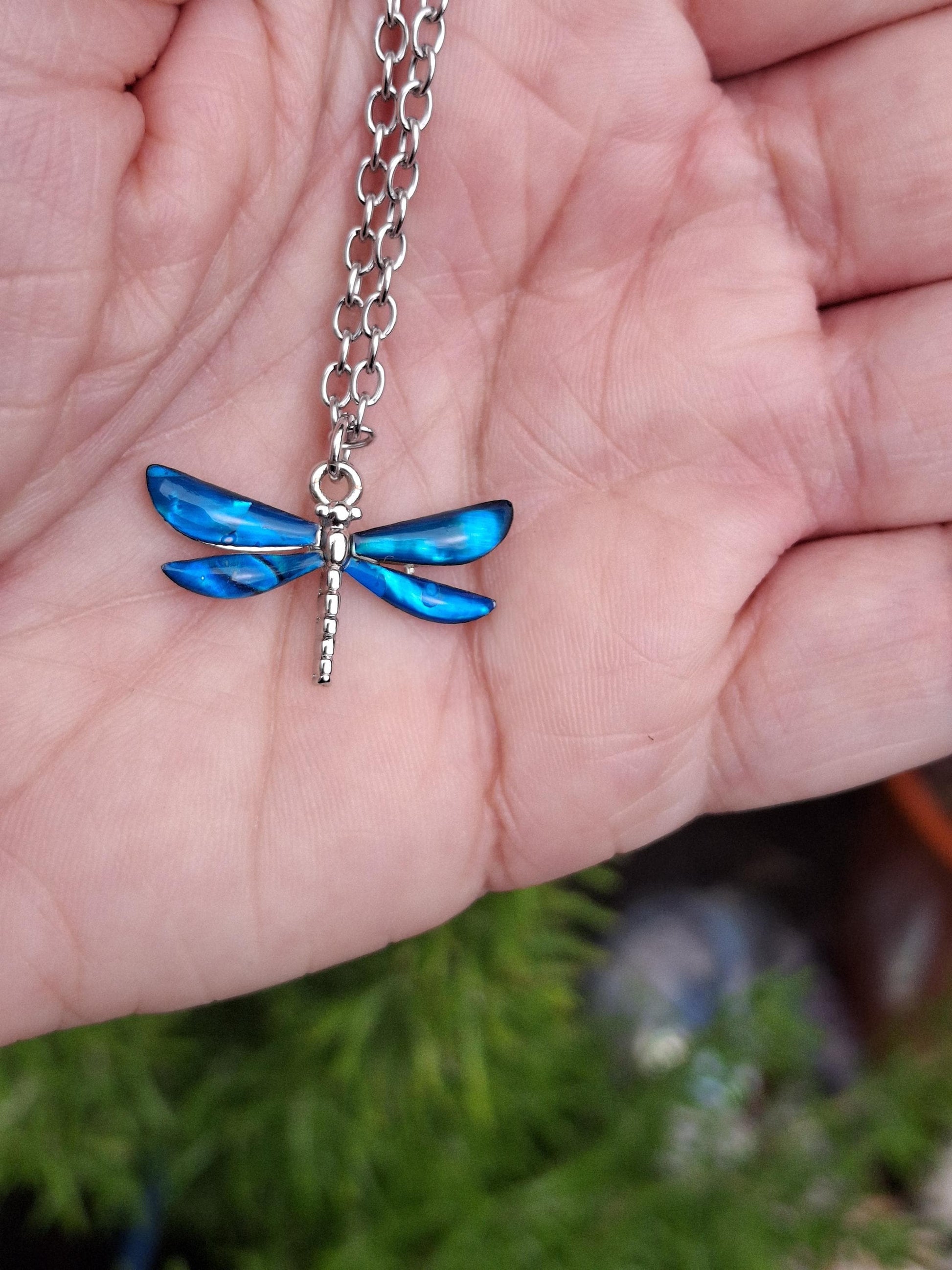 Blue Abalone Shell Dragonfly Necklace - Choose Your Chain Style