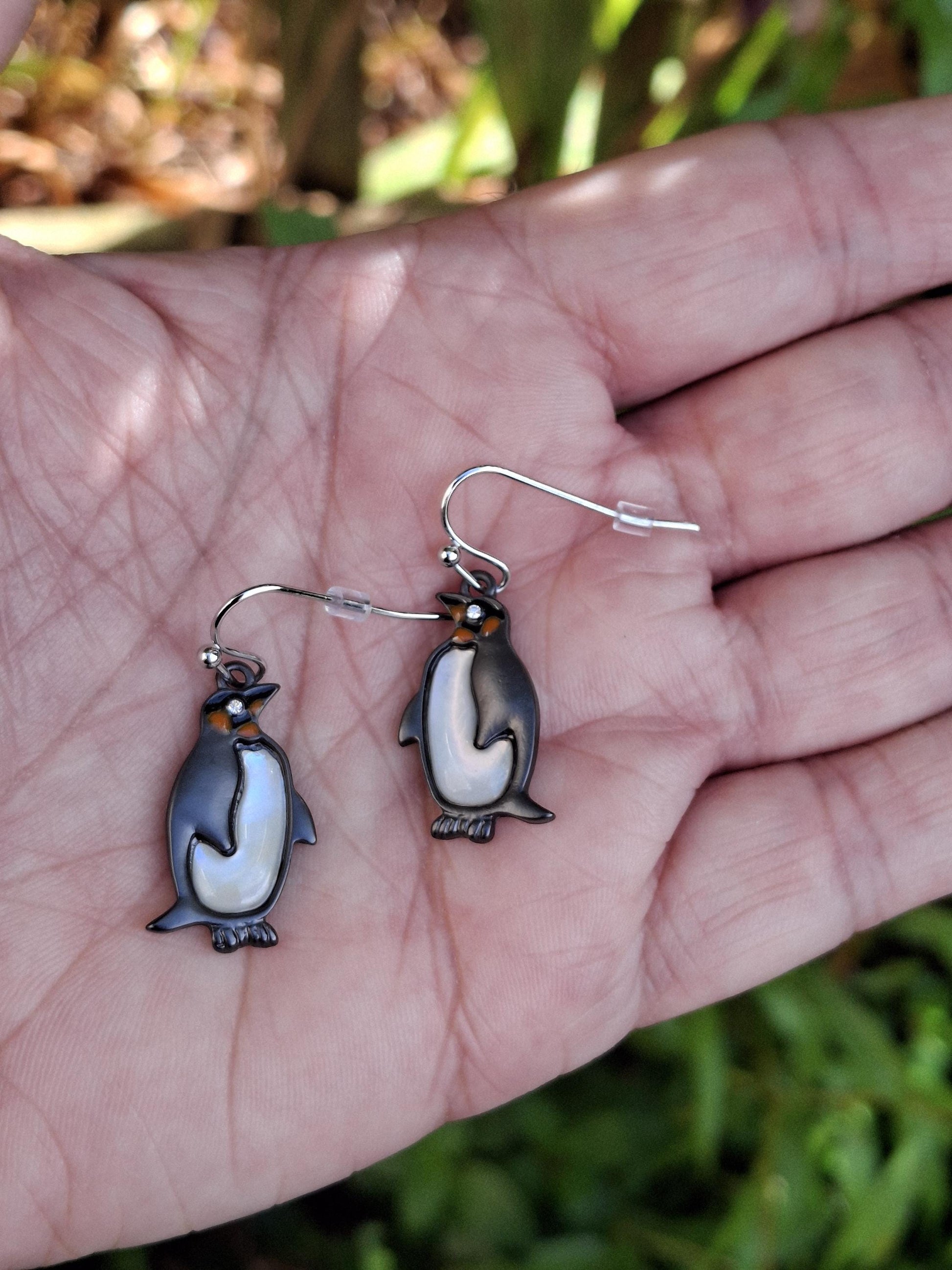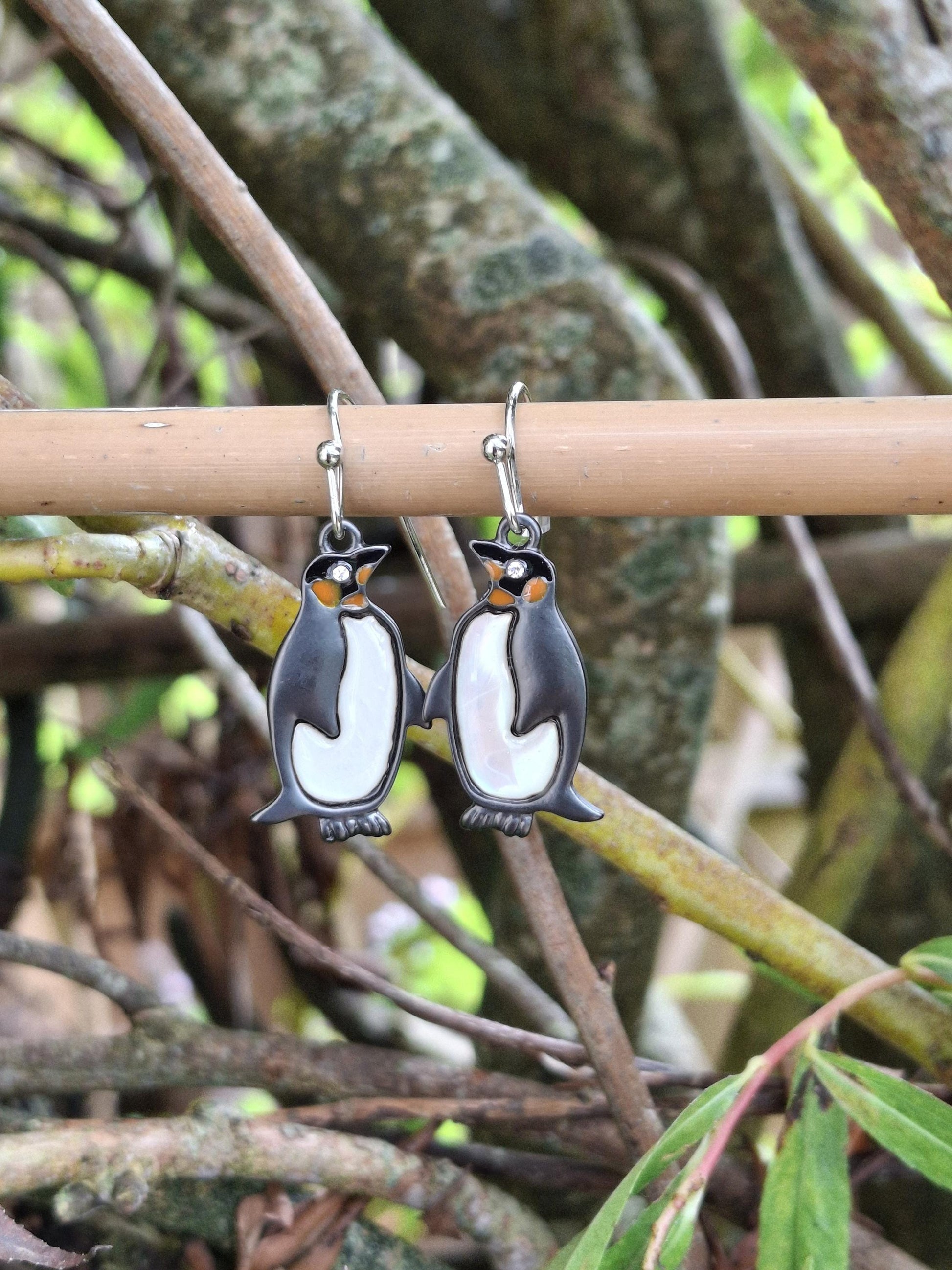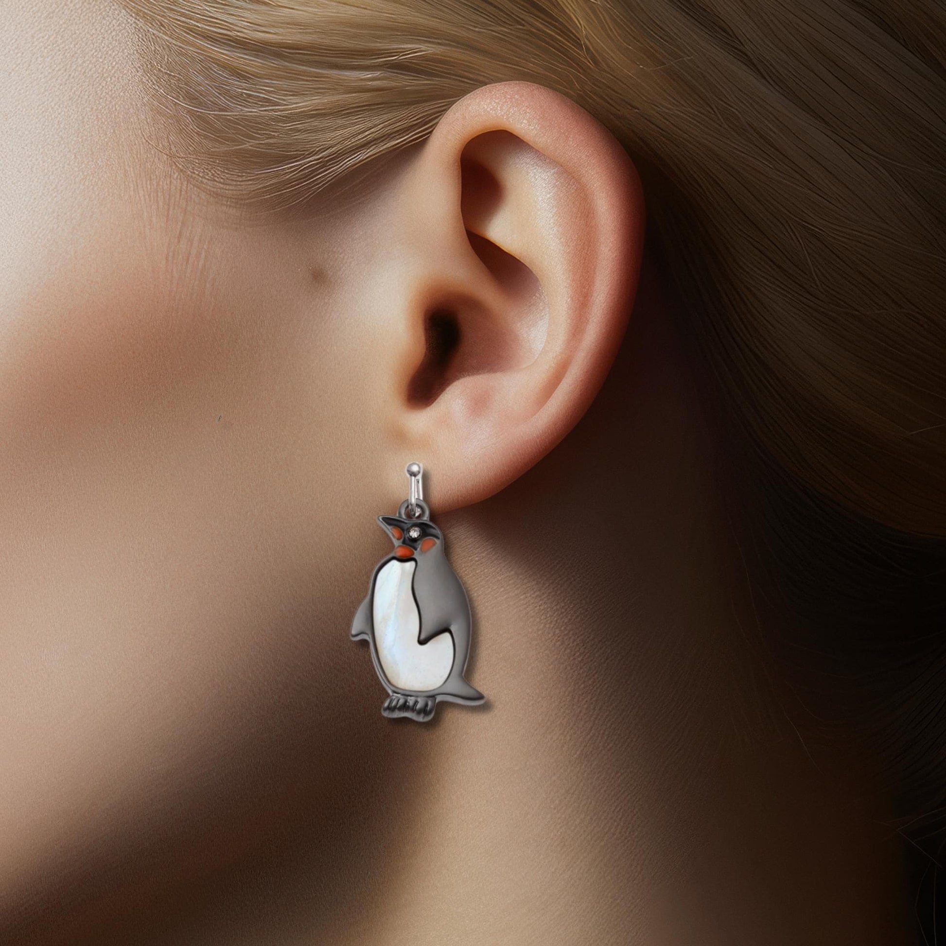 🐧 EMPEROR PENGUIN BIRD EARRINGS WITH MOTHER OF PEARL