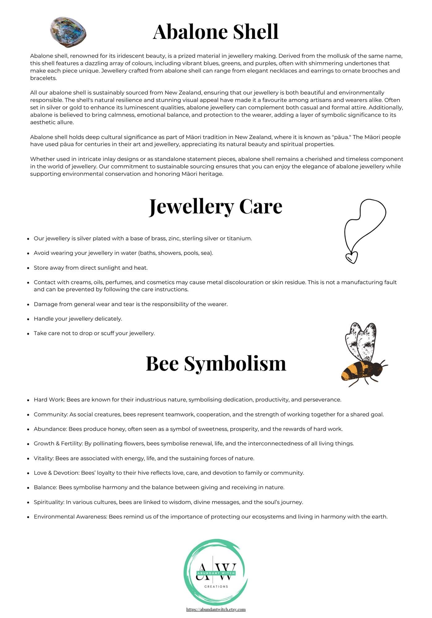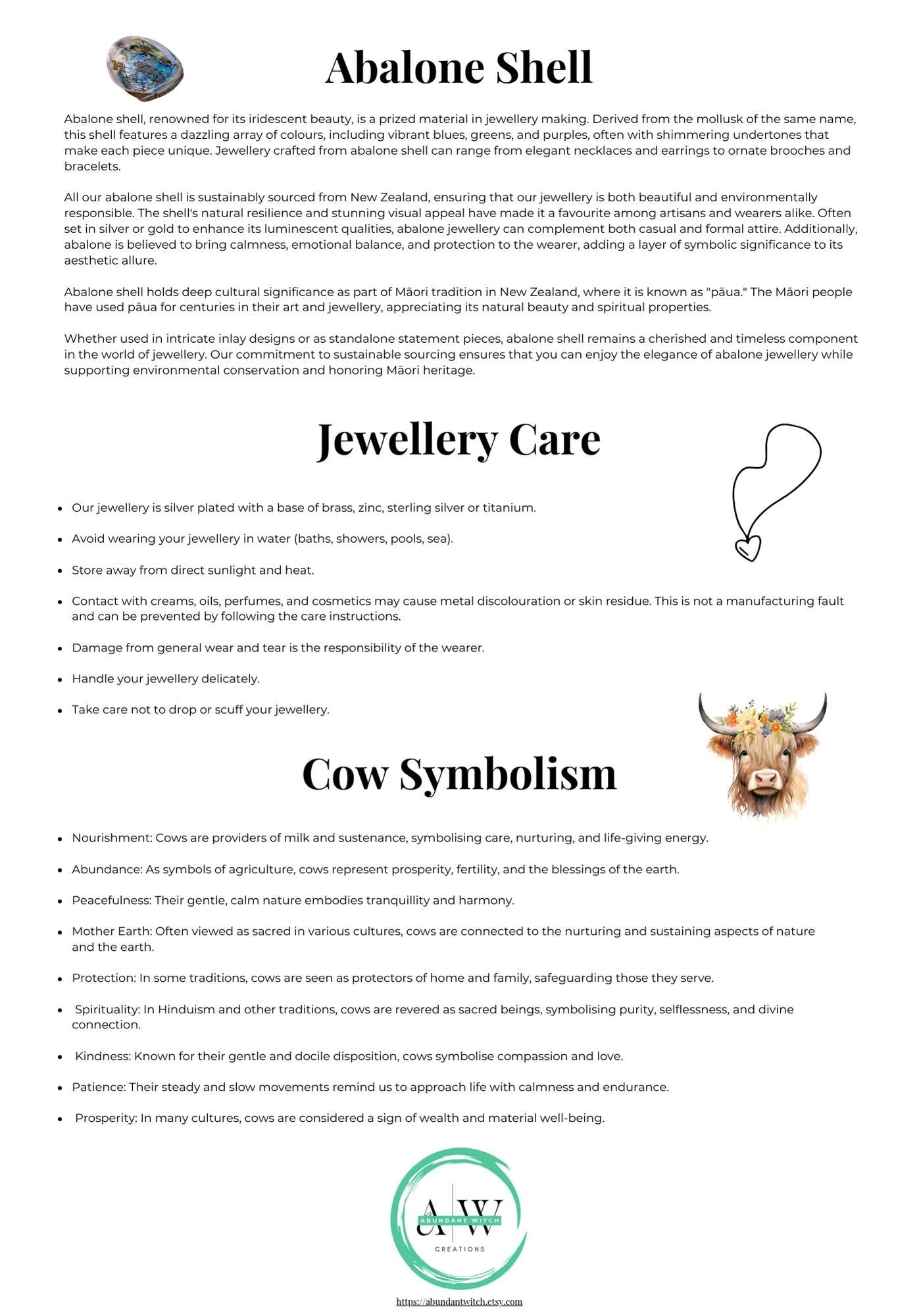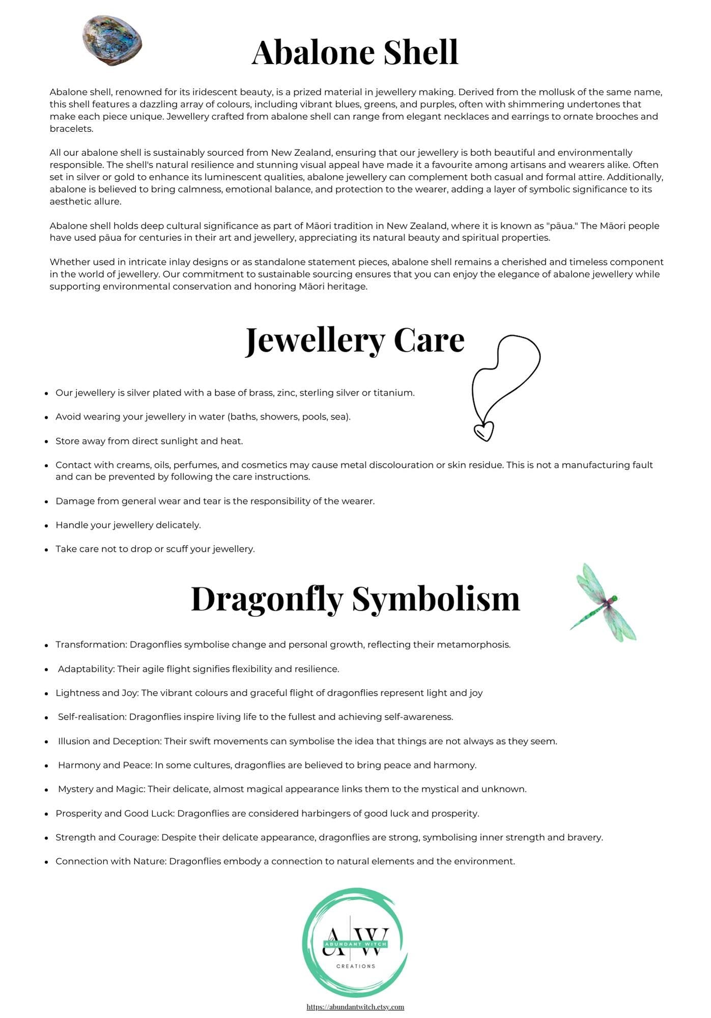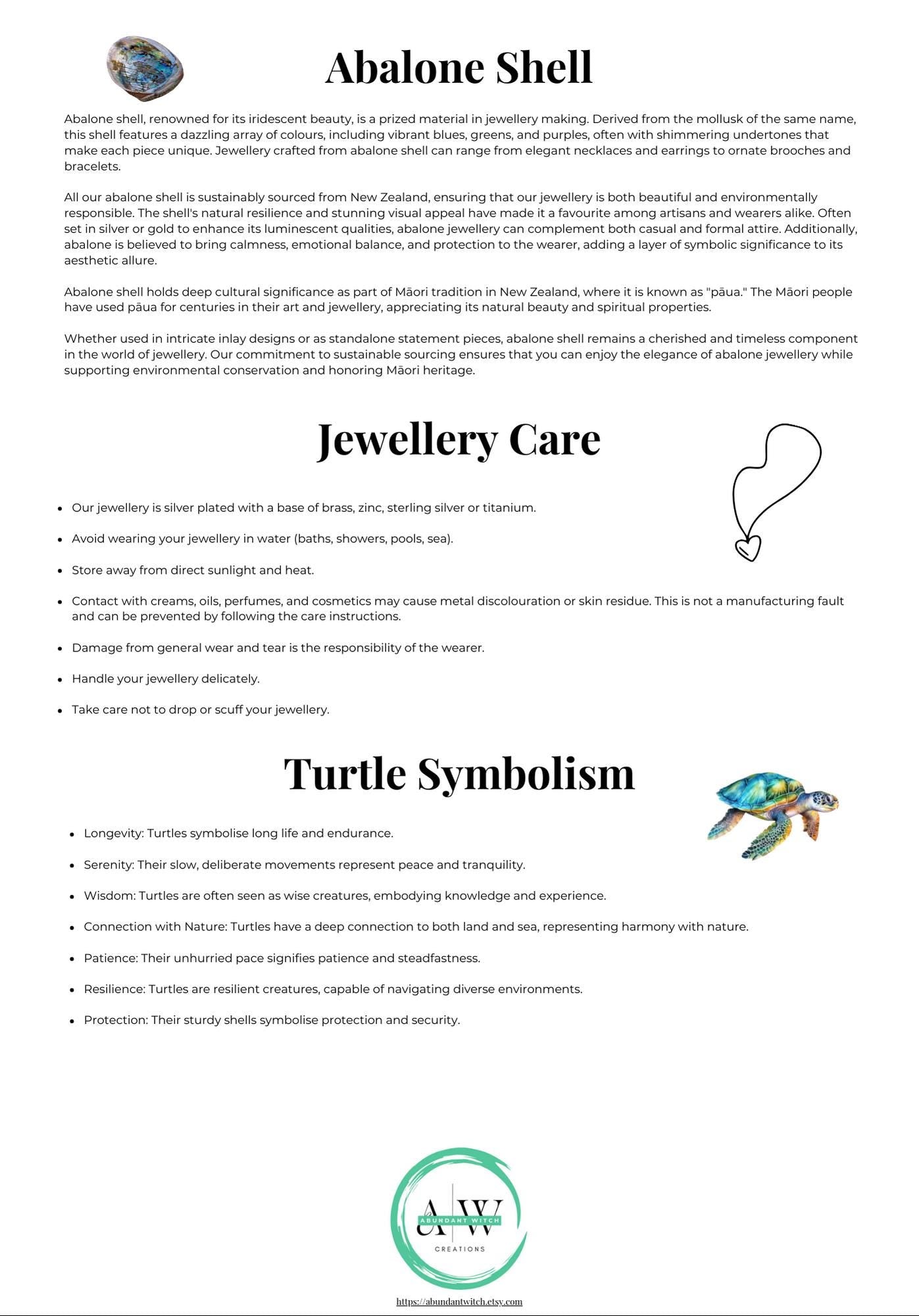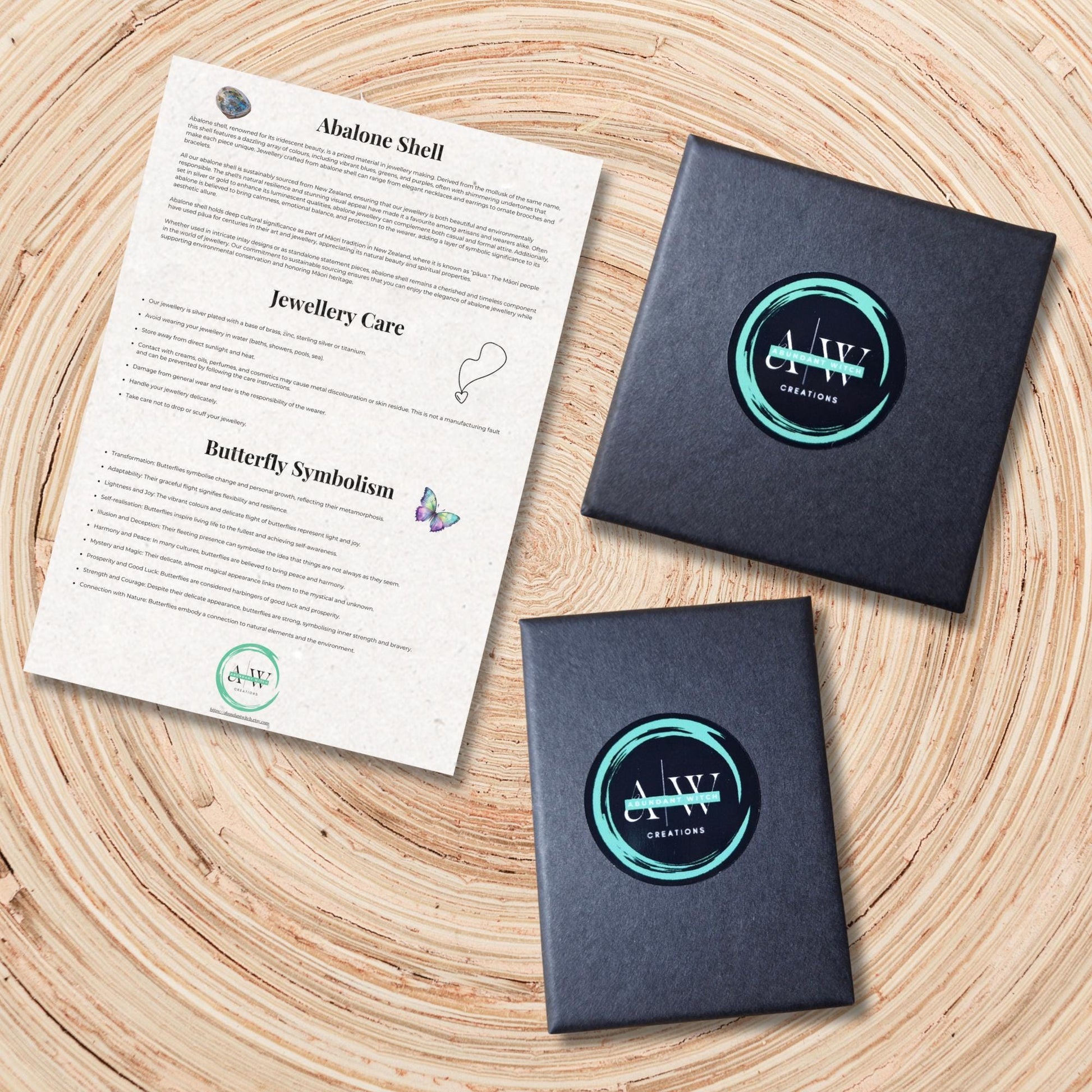 Your jewellery will be packaged in a branded gift box and will include a paper info sheet: