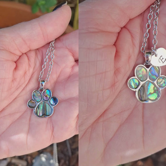 Personalised Paw Print Necklace with Abalone Shell & Initial Heart Charm
